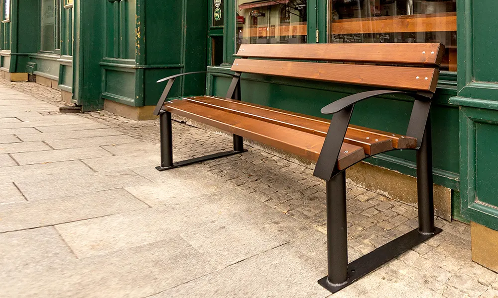 Tajemství lavičky Centurion je správná kombinace ocelových trubek a masivních plochých tyčí. Moderní design lavice Centurion umožnil ergonomicky tvarovat opěradlo a sedadlo. Naše nejnovější lavička tak zajišťuje pohodlný odpočinek pro každého uživatele. Lavička Centurion dokonale ladí k našemu nejnovějšímu odpadkovému koši Centurion.