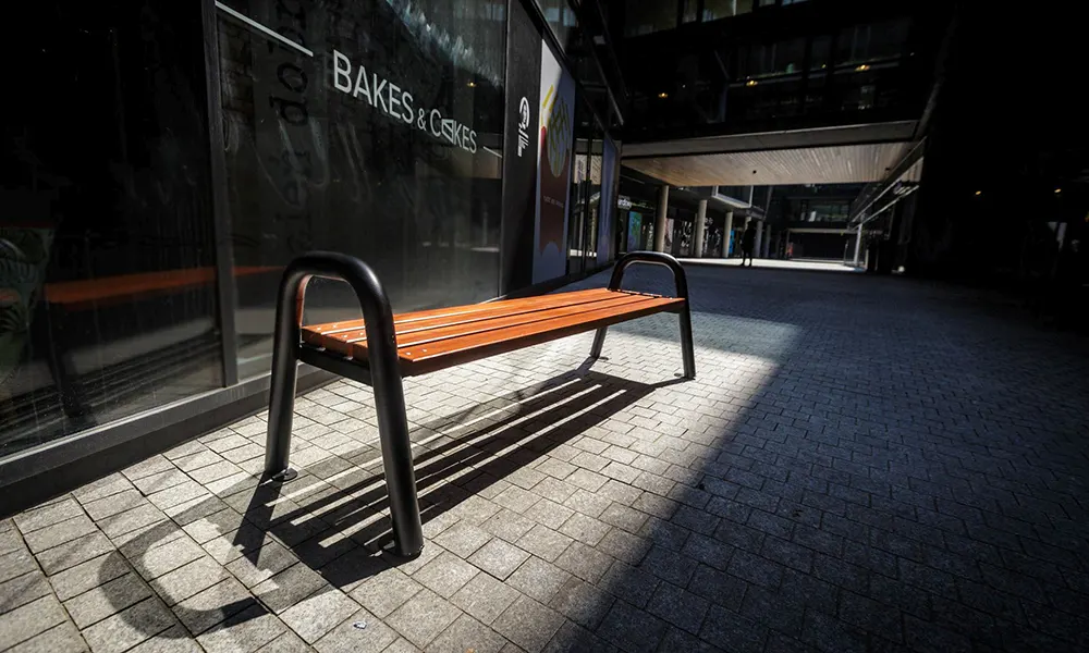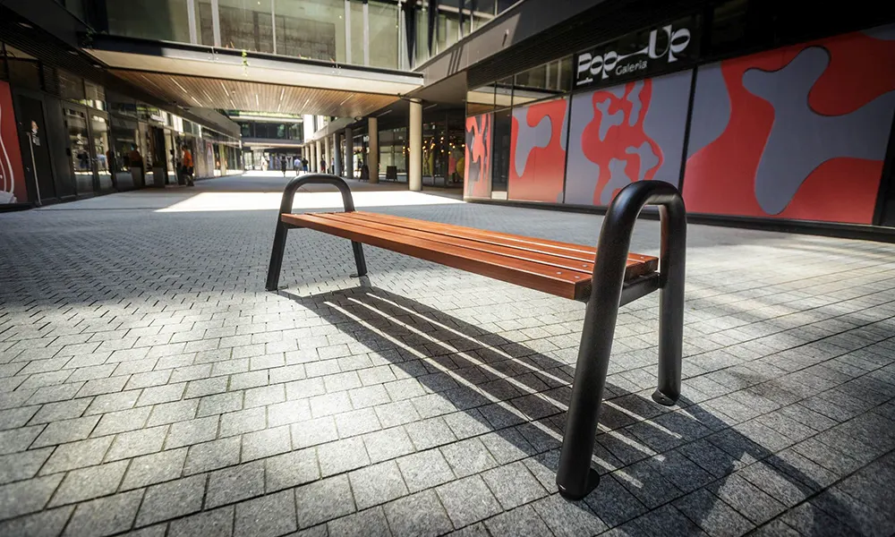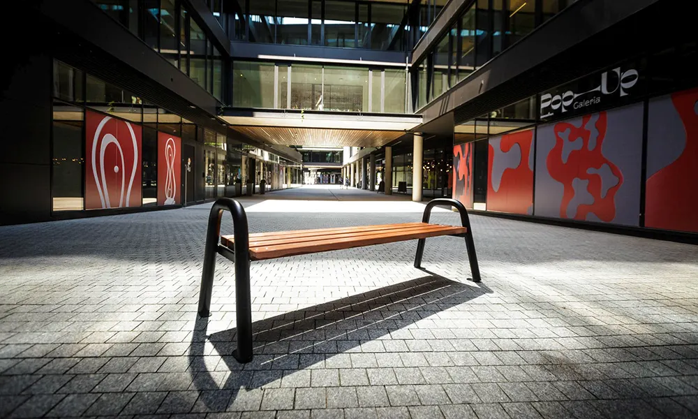 Rám lavičky je vyroben z 60 mm ohýbané práškové trubky.
