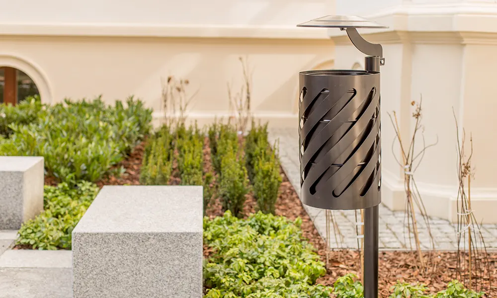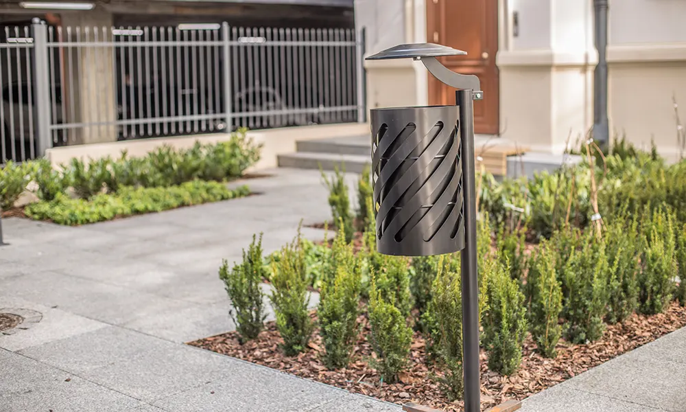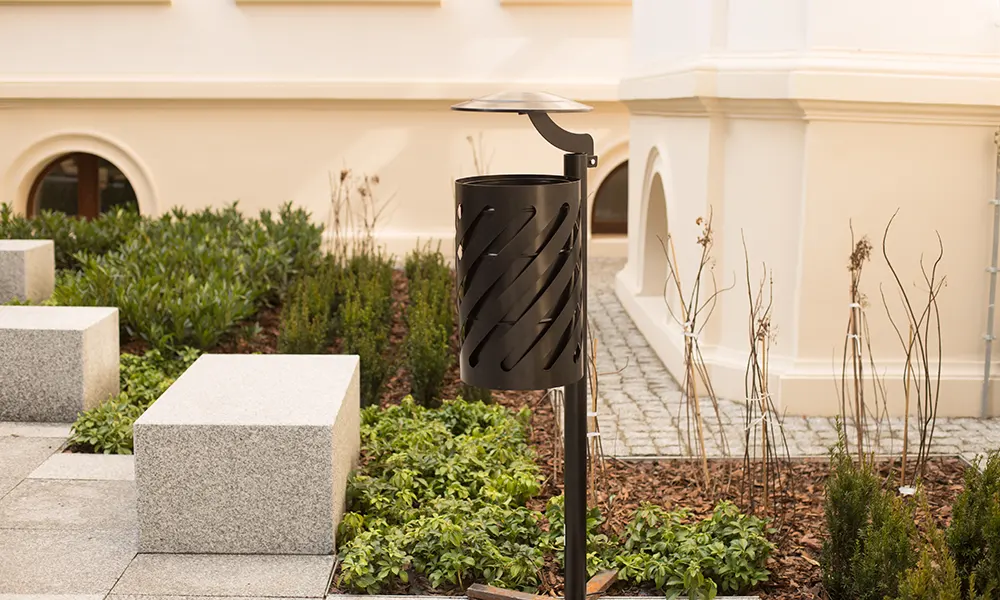 Odpadkový koš Sofia Bis se stříškou byl vytvořen především v reakci na potřeby našich zákazníků. Univerzální styl a zajímavý design znemožňují moderní městský prostor bez oblíbené popelnice Sofia Bis. Koš v této verzi je zajištěn stabilní ocelovou stříškou, která účinně chrání před deštěm.