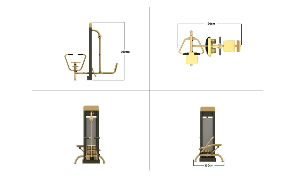 Posaďte se na sedadlo, obě nohy položte na plošiny a rukama uchopte obě rukojeti. Táhněte rukojeti směrem k břichu a zároveň narovnávejte nohy. Vraťte se do výchozí polohy. Cvik opakujte.